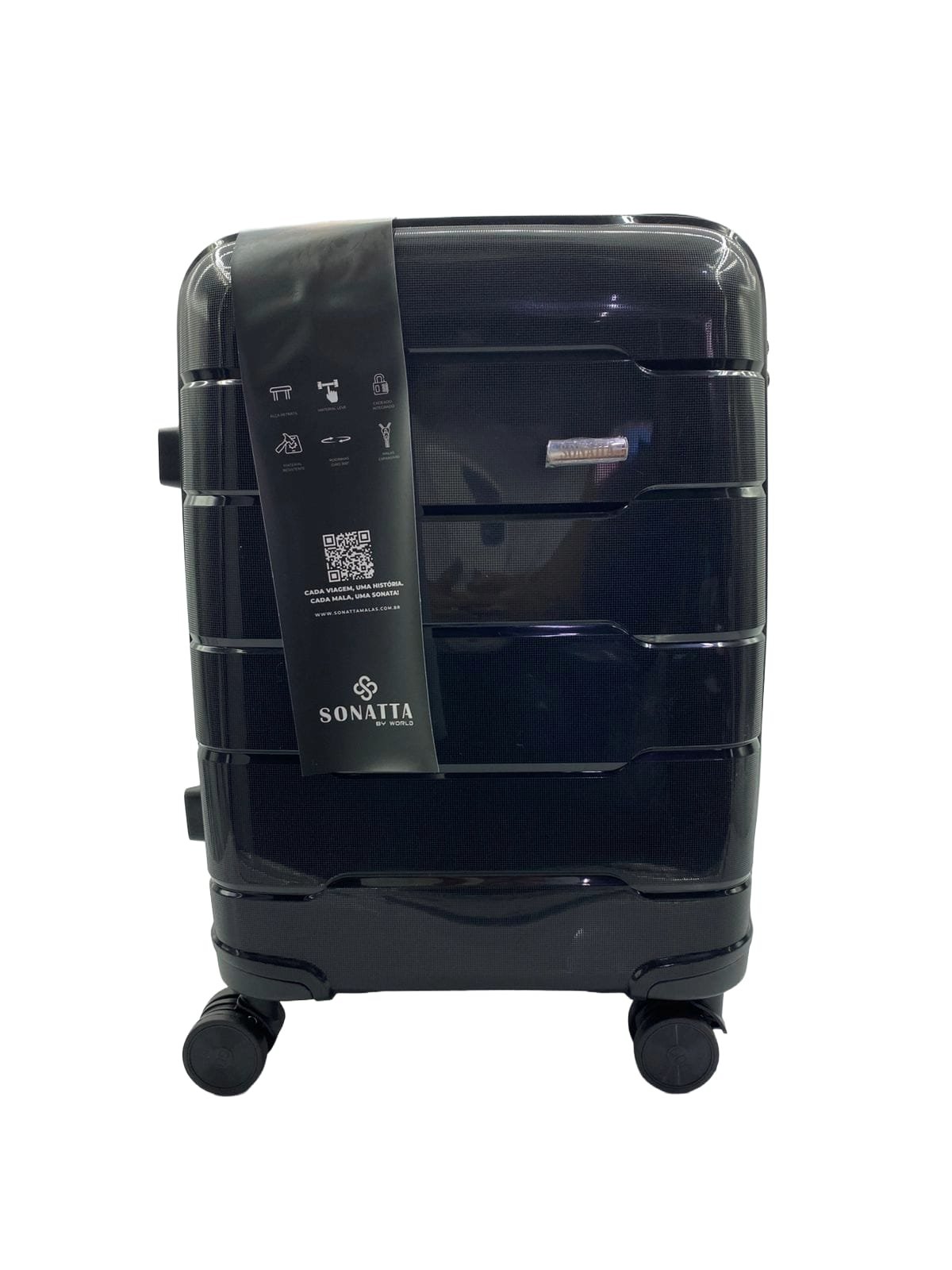 Mala de viagem rígida Sonatta com capacidade para 23kg, perfeita para viagens nacionais e internacionais. Construção durável com rodas 360° de alta mobilidade, alça telescópica ajustável e fecho de segurança. Design preto sofisticado com interior organizado, oferecendo máxima proteção para seus pertences durante todo o trajeto.